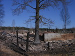 деревня Фролово. Спутниковая антенна на дереве рядом с пожарищем