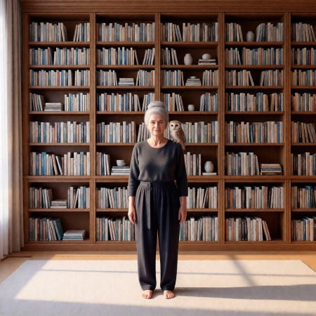 Её вид производил впечатление доброй бабушки — слегка морщинистое лицо, седые волосы, собранные на затылке в узел. Зато на плече сидело живое воплощение её символа — некрупная сова.